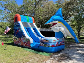 Featuring a gigantic marlin and bright, eye-catching side designs, this 16-foot slide is a favorite among younger riders. It’s the perfect blend of adventure and excitement for any celebration.