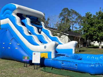 At 24 feet tall, this slide reaches the maximum height for ultimate thrills. It’s a long climb to the top, but the ride down is worth every step! A dry stopper option is available for cooler weather events.
